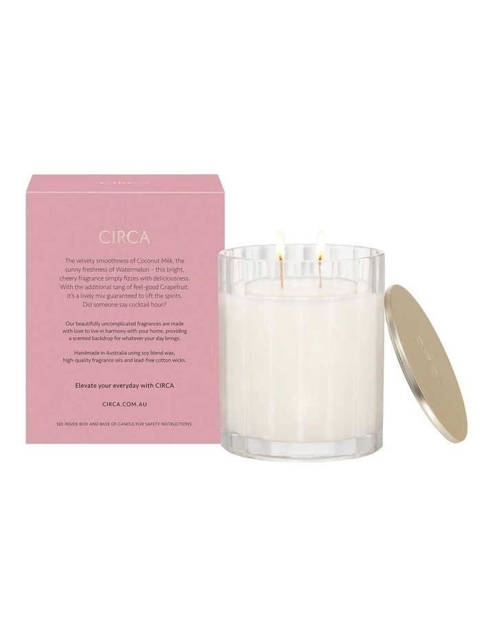 The velvety smoothness of Coconut Milk, the sunny freshness of Watermelon this bright, cheery fragrance simply fizzes with deliciousness. With the additional tang of feel-good Grapefruit, its a lively mix guaranteed to lift the spirits. Did someone say cocktail hour?