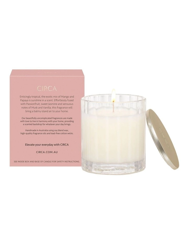 Enticingly tropical, the exotic mix of Mango and Papaya is sunshine in a scent. Effortlessly fused with Passionfruit, sweet Jasmine and sensuous notes of Musk and Vanilla, this fragrance will bring a balmy island air to your home.