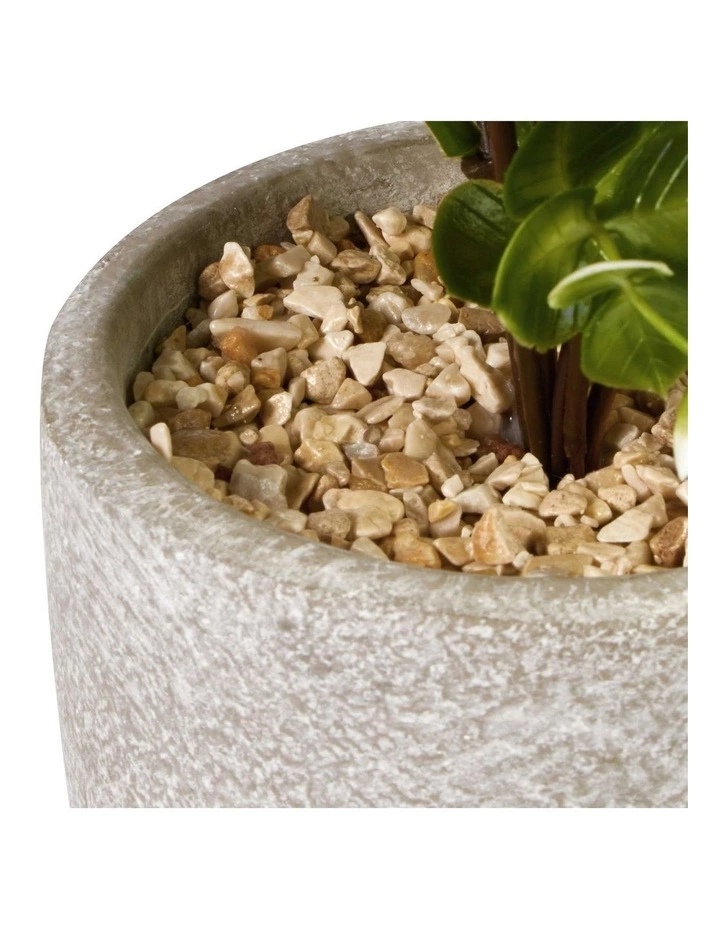 You won’t need to spend extra on a pot or vase to match. This plant comes with an exposed-finished cement pot finished with real stones for a bright and fun contrast.