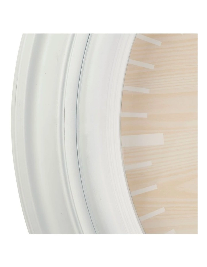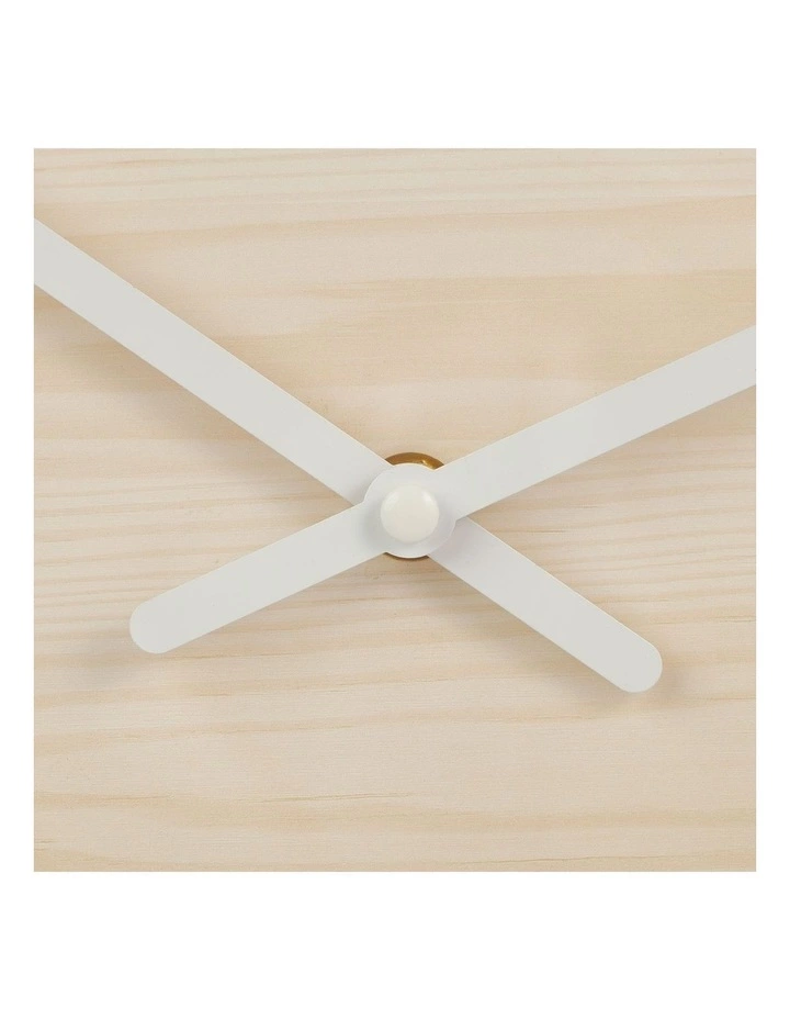 The tapered frame is a flat white contrasted with oak dial create a simple yet classic look.