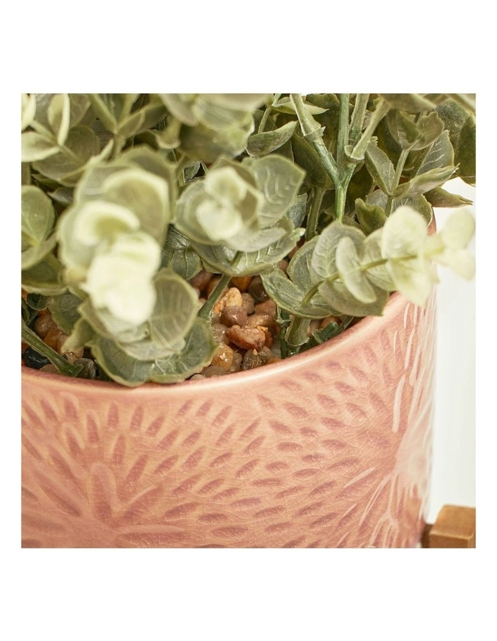 Add the beautiful slender leaves of the Potted Faux Succulent Plant to any room at home or office to create a green space. Made of high-quality soft and realistic plastic, the Artificial Succulent plant is nestled inside a beautiful round ceramic pot with a sturdy wooden stand for versatile appeal. It is low maintenance and needs minimal attention and cleaning compared to real plants.
