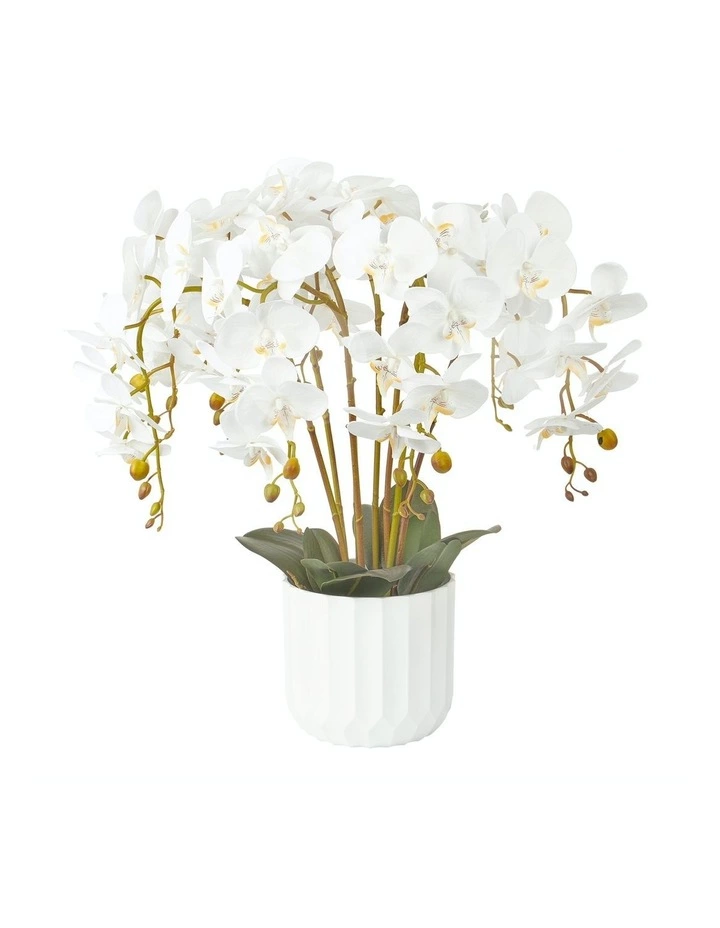 Give any room in your home an eye-catching wow factor with the Cooper & Co. 55cm white orchid plant.Unlike your usual artificial plant, these orchid features a clump of 8 large stems. Each stem is adorned with real-life-looking orchid petals and bulbs you’d find in a real botanical garden.No detail has been spared.
