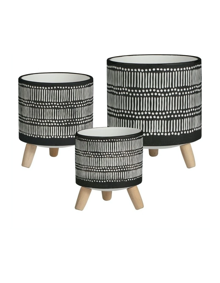 Elevate the natural feel of your living space with the Cooper & Co. Set of 3 Nested White Stripe Terracotta Pots.