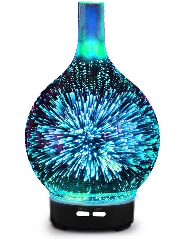 These are carried to the surface to mate with the essential oils and create lovely therapeutic fragrances that fill the air. A wonderful way to purify the air and remove unwanted odours too. The diffuser comes with two mist frequency adjustments and a 7-colour LED night light. Better still, this unique diffuser also has a built-in 3D fireworks lighting effect to add a brilliant light show while you relax and rejuvenate.