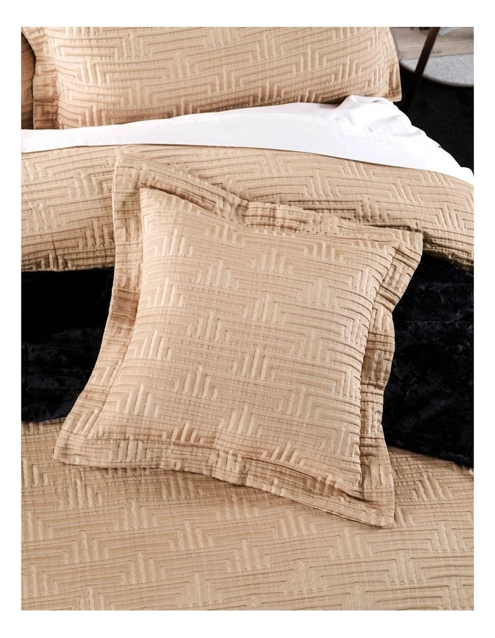 Pair this super-glam gold cushion with tailored edges with its coordinating quilt cover set and European pillowcase for that finishing touch.