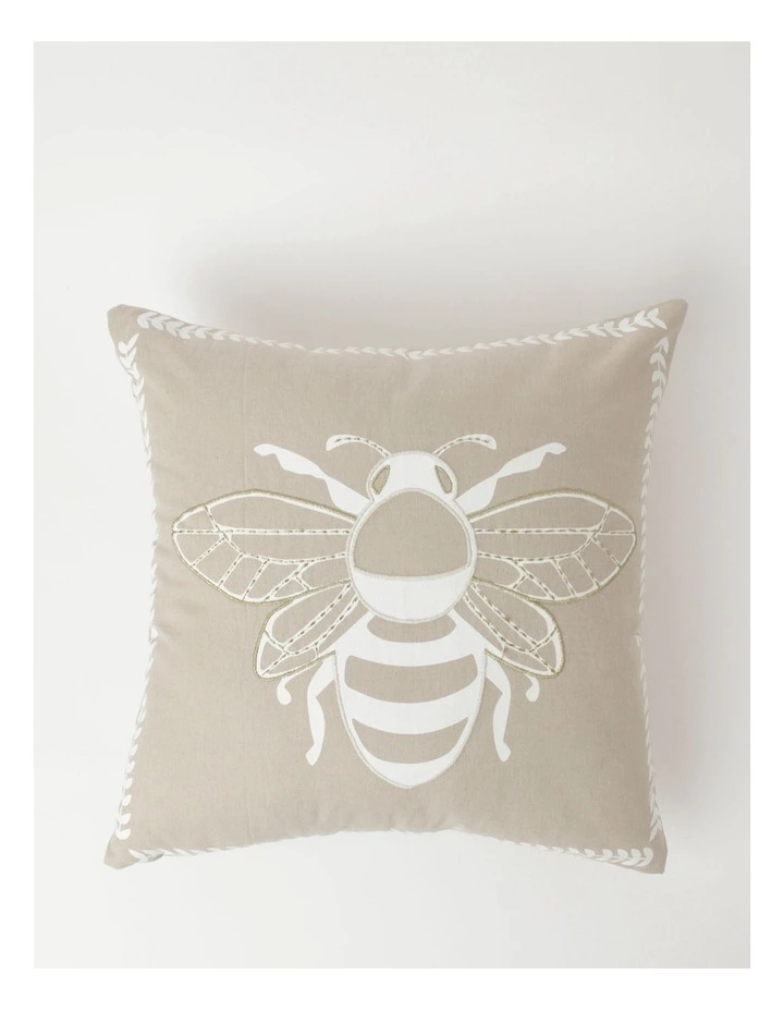 Heritage Mellifera Embroidered Bee Cushion in Natural