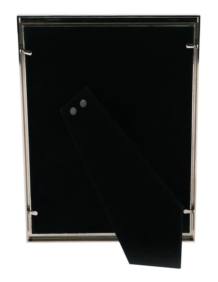 Zinc Alloy photo frame with glass and mother of pearl inlay. Frame size: 10x15cm. Velvet easel backing allowing it to sit horizontally and vertically