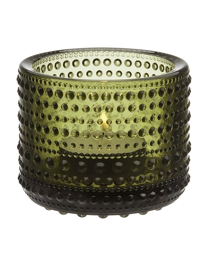 The Finnish name for dewdrop refers to the circles of bubbles in the pressed glass. Inspired by Finnish nature, the dewdrops glisten like a string of pearls on grass in the morning sun. Oiva Toikka’s love for experimentation led to the creation of an entirely new droplet design for Kastehelmi. The resulting surface structure brings out the living, reflective beauty of the glass. The Kastehelmi Votive 6.4cm in Moss Green is great for decorating your home and tablesettings. Made in: Finland. Made from: Pressed Glass. Packaging: This item is gift-boxed. Care: Hand Wash Only. Height: 6.4cm.