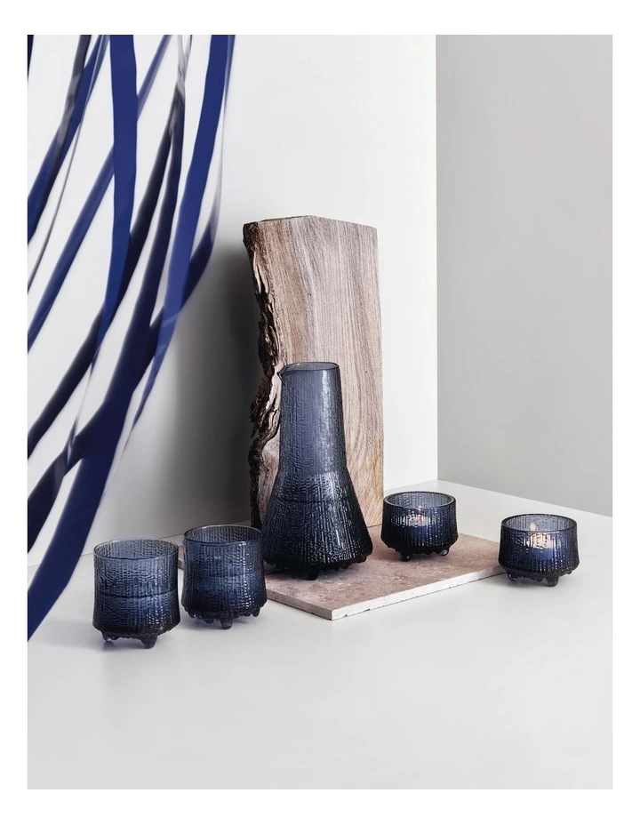 Inspired by the melting ice in Lapland, Wirkkala originally created the surface in the 1960s after carving into a graphic mould. An exclusive design reflecting the thousands of hours spent perfecting the glass-blowing technique required to produce the effect. The patterns gradually change as the glass burns the surface of the wooden moulds.