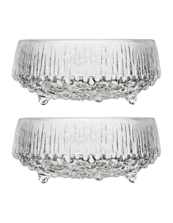 Inspired by the melting ice in Lapland, Wirkkala originally created the surface in the 1960s after carving into a graphic mould. An exclusive design reflecting the thousands of hours spent perfecting the glass-blowing technique required to produce the effect. The patterns gradually change as the glass burns the surface of the wooden moulds.