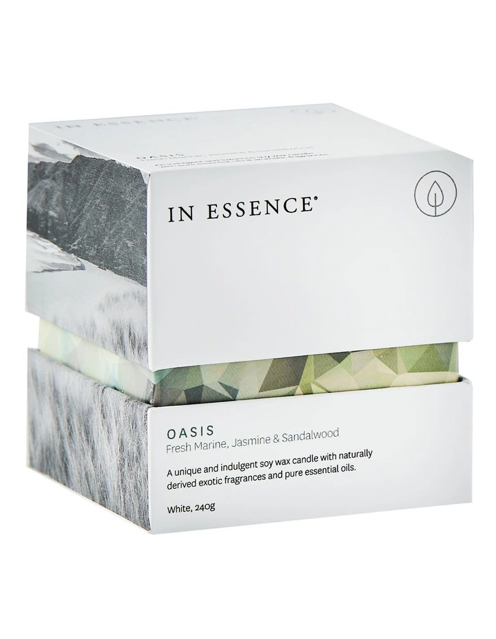 Oasis combines balancing and relaxing heart notes of jasmine, lavender and star anise with accents of fresh marine and warming sandalwood to elevate the senses.