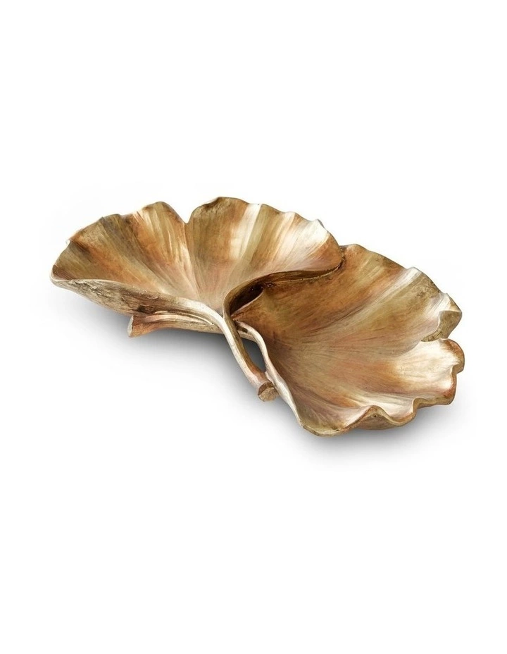 A beautiful antique gold decorative platter. Pairs beautifully with our Ginkgo Leaf Stand.