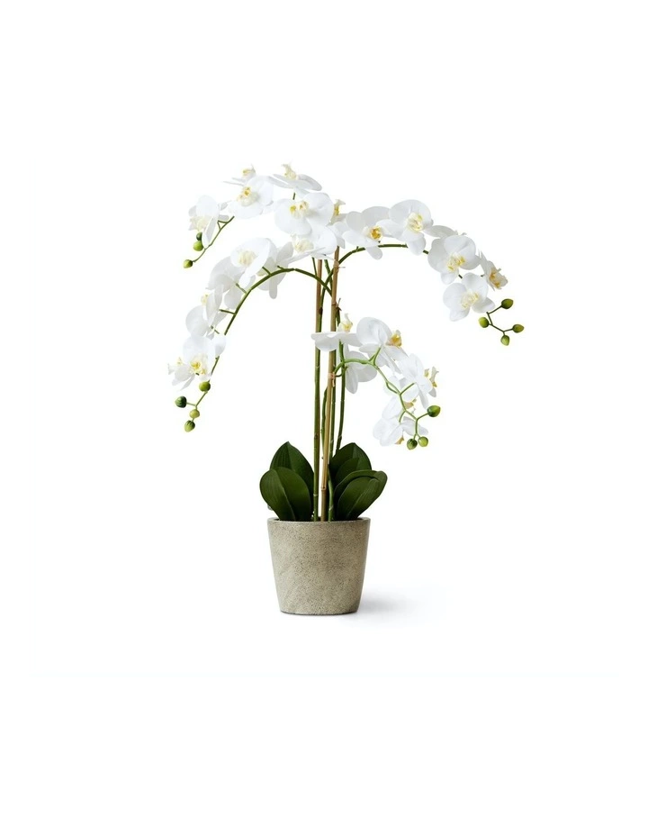 A beautiful White Orchid decorative complete with a cement coloured pot.