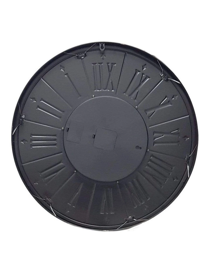 Clean sophisticated and modern, this beautifully crafted wall clock puts the popular in mechanics. The unpolished look provides a neutral aesthetic, while the visible inner mechanisms and cut out details provide visual interest. The frame is made of pure metal with an antique rustic washed metal finish. Adding to its modern charm the roman numerals are skilfully indented onto the metal face of the clock. This clock has an exposed gear movement, thus you are able to view the "skeleton" of the movement in the clock. Exposed gears rotate to fuel the rhythm of the clock’s slender black hands, leaving admirers mesmerised and in a hypnotic state as they watch the gears rotate in perfect unison. Requires 3 AA batteries (not included).