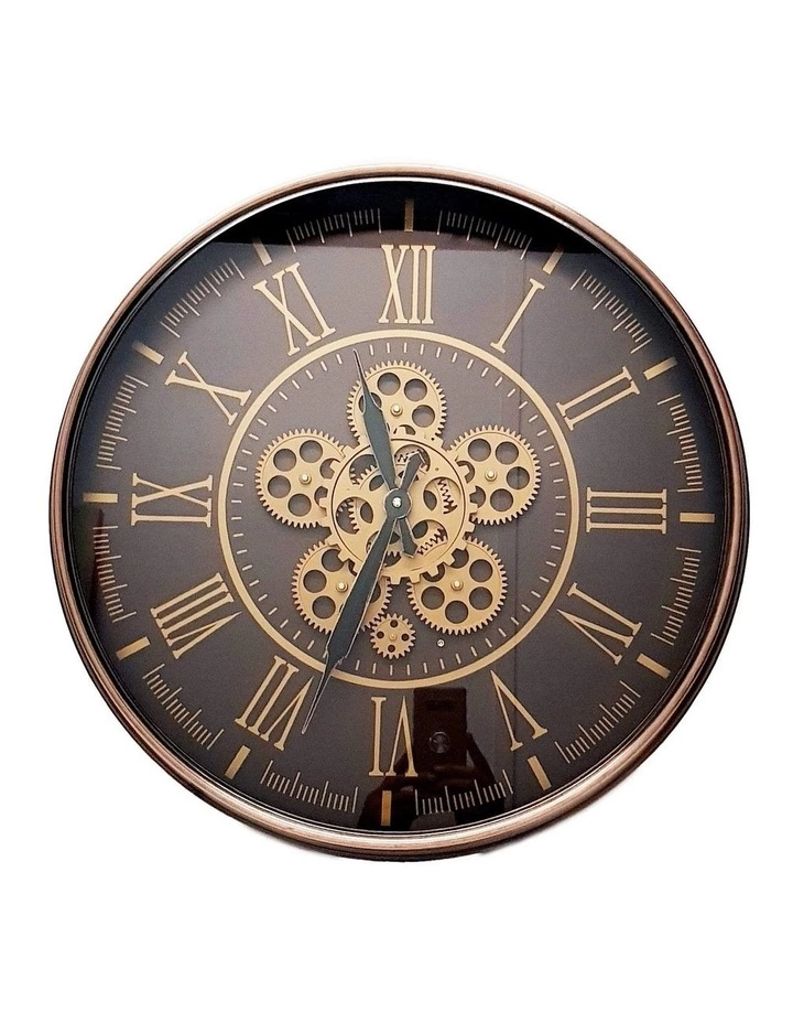 D55cm Round Hermes moving cogs wall clock – Choc w/ Rose Gold Copper