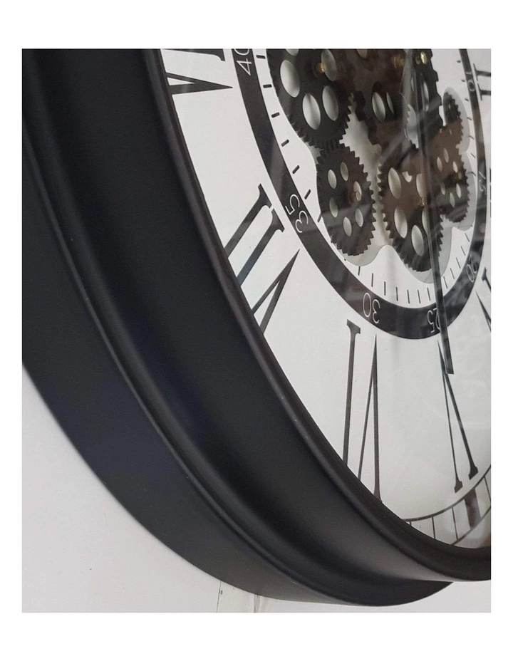 This Skeleton Clock has an exposed gear movement, thus you are able to view the "skeleton" of the movement in the clock. Exposed gears rotate to fuel the rhythm of the clock’s slender white hands. Thick, high grade piece of glass protects the metal clock face & design of the cogs. The contrast of the black frame together with the white face gives this clock a simple yet contemporary appeal.