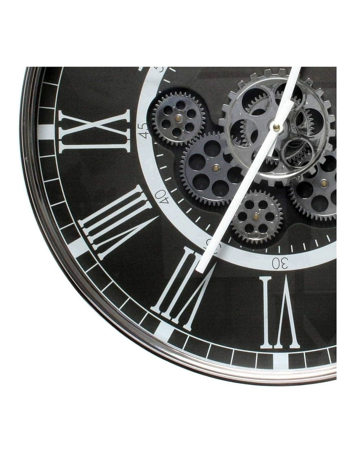Clean, sophisticated and modern, this beautifully crafted wall clock puts the popular in mechanics. The unpolished look provides a neutral aesthetic, while the visible inner mechanisms and cut out details provide visual interest.The frame is made of pure metal with an antique rustic washed metal finish.