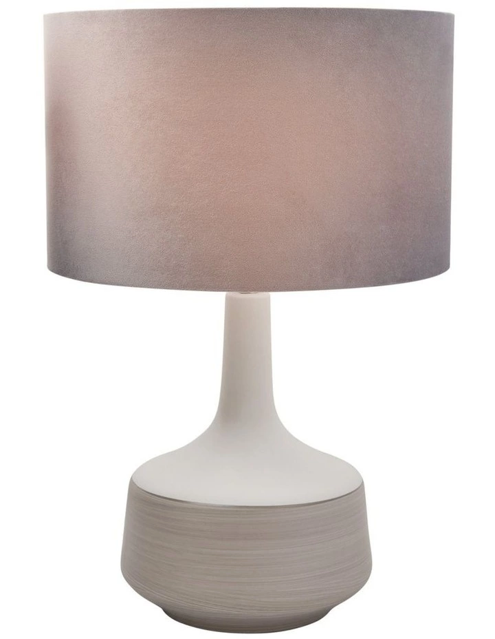 - With a durable ceramic base and a stunning flannelette fabric shade finished in neutral colours that complement any decor