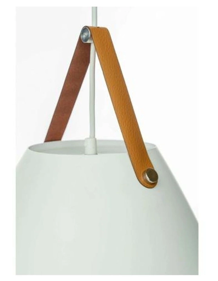 - This fitting is fully height adjustable at point of installation. And this modern pendant features a matt white shade with a warm brown belt finish and matching matt white ceiling plate. A perfect combination of sleek design and contemporary style for your home. Also available in black and white