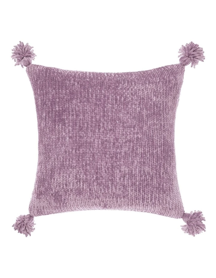 This textured cushion in orchid haze will effortlessly work in your bedroom or living area and is trimmed with pom-pom corners for a distinctively playful accent.