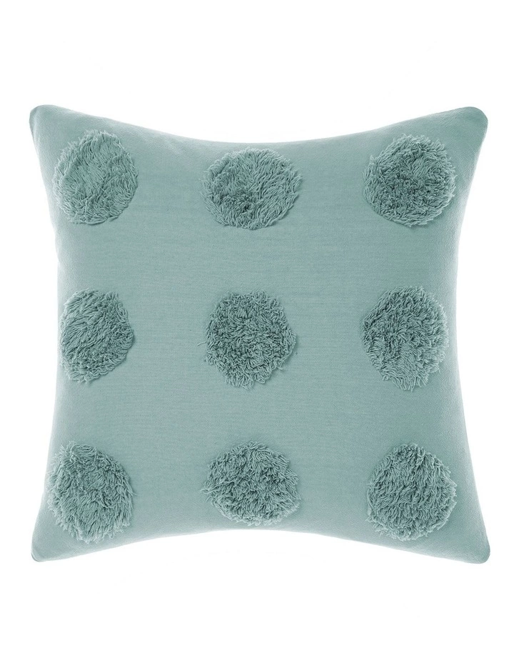 This chenille-spotted cushion in surf completes the nostalgic style of our best-selling bed linen, Haze.