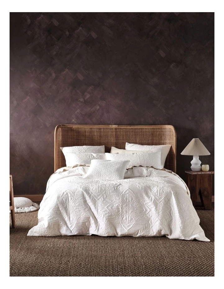 The quilted, linen-look cushion enjoys ornate patterns throughout and looks wonderfully decorative paired with its coordinating bed linen and European pillowcases, as well as tufted and velvet accessories for added warmth.