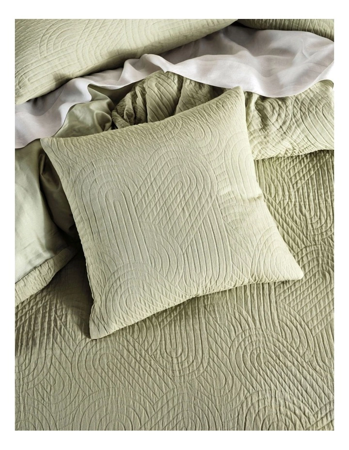 This charming and super-cosy wasabi cushion looks sublime indulged with its matching quilt cover set and European pillowcases along with soft, textural accessories for a cocoon-like setting.