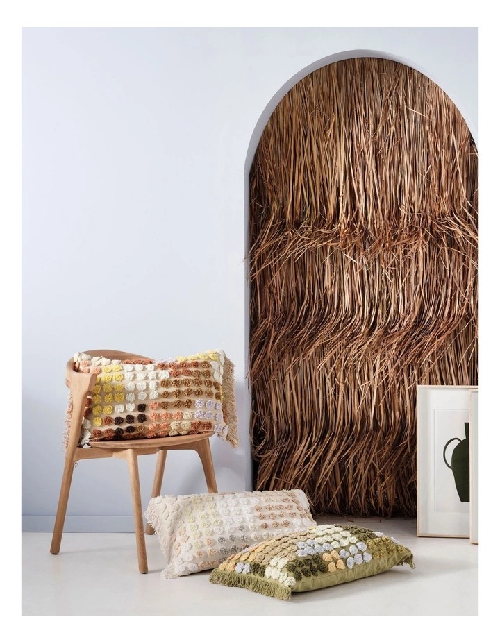 Made from tufted cotton chenille, this cushion enjoys a fringed trim on either side for a laidback Boho style.