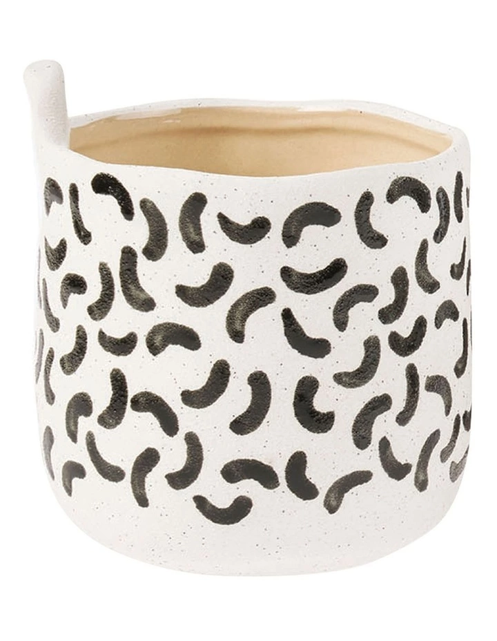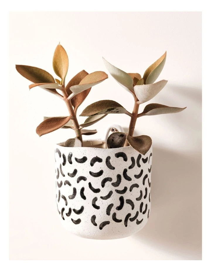Relish the fun that this 15cm stoneware planter pot will inject within your home. Create movement in any space with this hand-painted black crescent pot – hang it from your ceiling with its inclusive 130cm hemp rope or place it flush against a wall that needs a little jazzing-up.