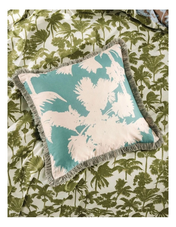A sweet, stylish micro palm scene, the beauty of this cushion is its print on textured cotton, to complement its coordinating quilt cover set in leaf.