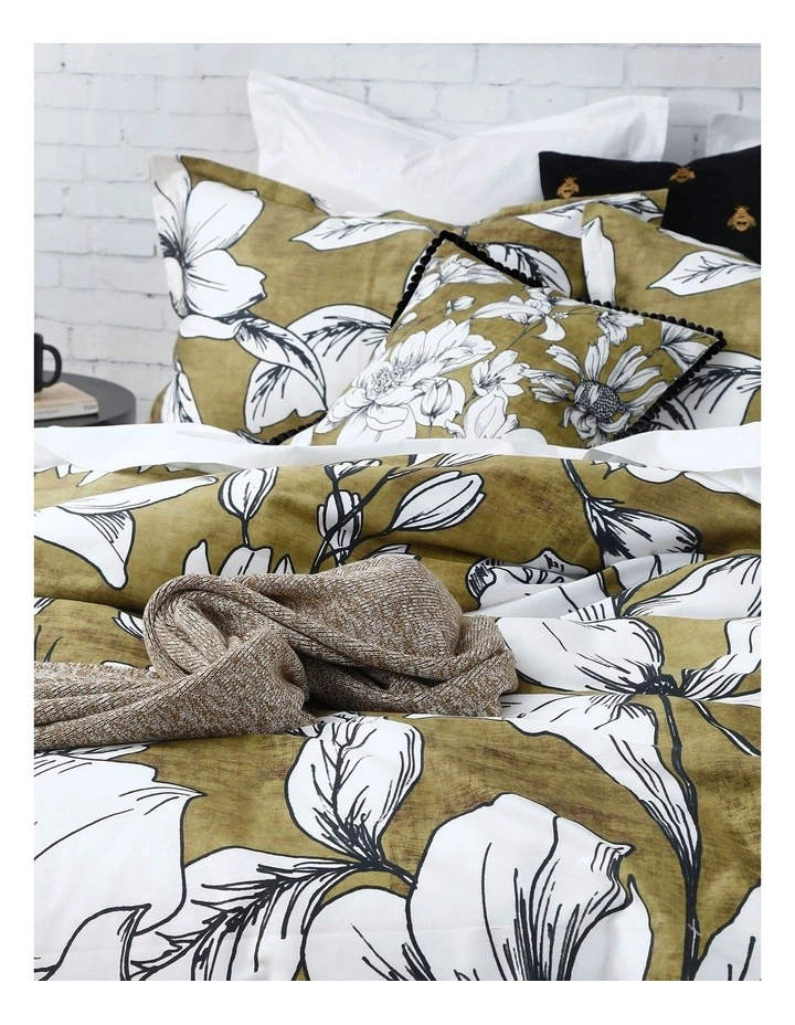 Trimmed with elegant black pom-poms, this cushion makes quite an impression styled with its coordinating quilt cover set and matching European pillowcases.