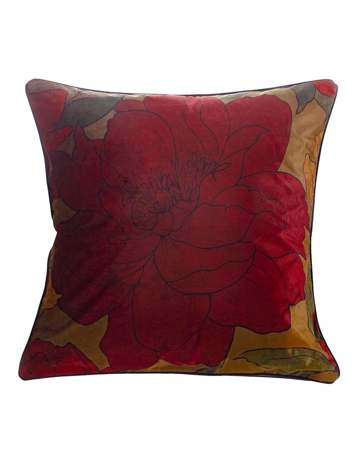 Opulent and Japanese-inspired, the colour-blocked floral on this cushion is printed on a luxuriously soft polyester velvet.