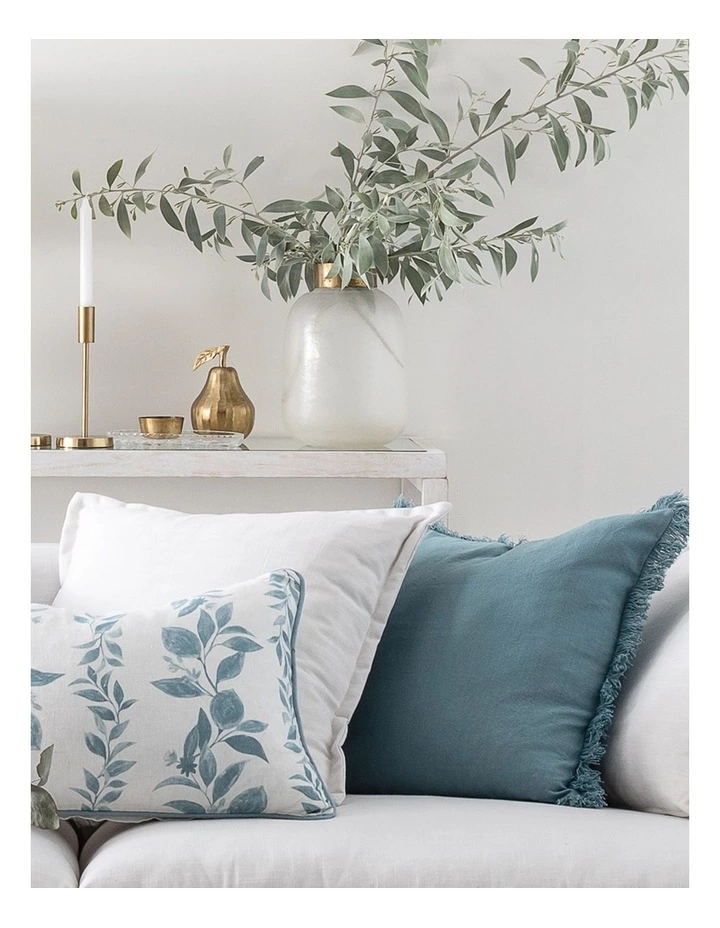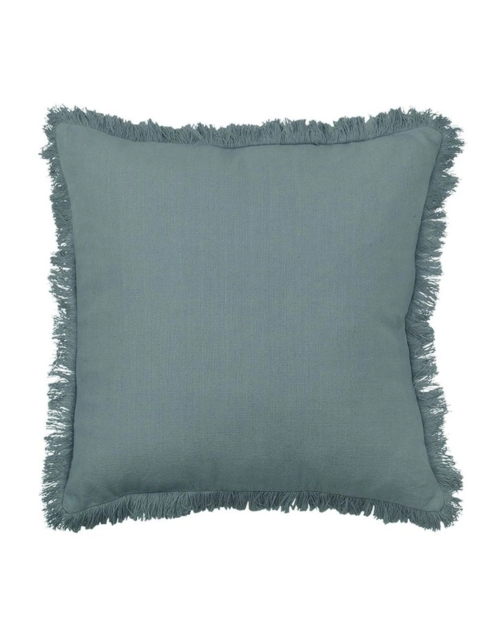 Chambray cushion with self fringes and zip 10cm from base of cushion.