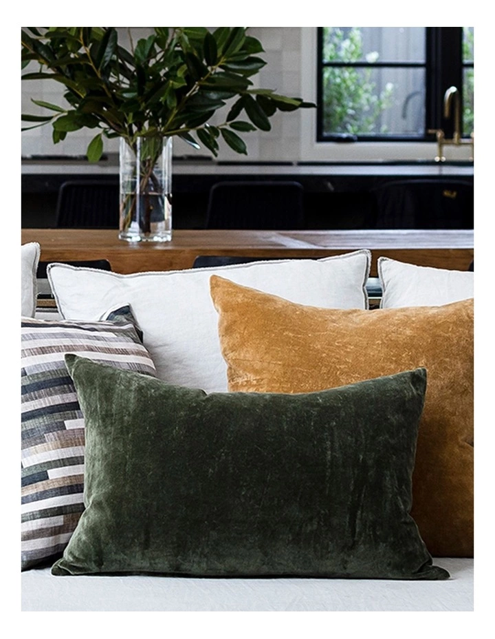 Cotton Velvet Olive with Natural Linen Reverse. Knife Edge. YKK Zip.