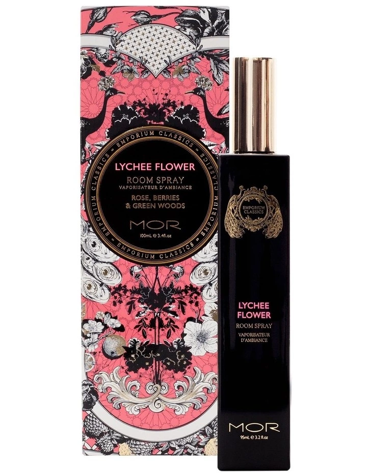 A perfumed paradise In a lush, green wood oasis, lively Lychee Flowers cheerfully tangle with Ripe Berries, sparkling Sweet Citrus and heady blooms of Rose and Jasmine. An exotic perfume to enchant and enrapture your senses. A luxurious home fragrance, this opulent room spray instantly transforms your house into a scented sanctuary. Sleek and stylish the elegant black glass vessel is adorned with golden embellishment to impart perfume and style for luxe living.