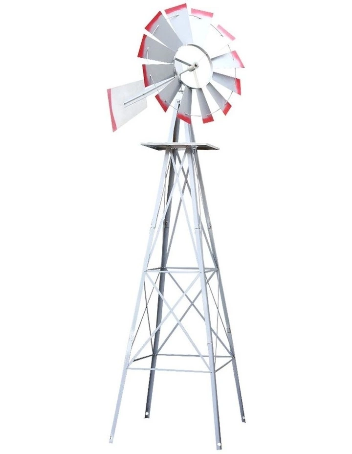 If you are after a unique yet beautiful decoration for your backyard, then our Garden Windmill is for you. The windmill has a weathervane built in so that you always know the way the wind blows. The twelve blades not only look trendy coloured in grey with striking red trims, but also turn smoothly and quietly. The frame is made of heavy-duty metal frame that is weather-resistant and rust-proof to withstand the harsh Australian climate. The windmill stands firm on four sturdy legs that can be secured to the ground with four stakes to withstand even strong winds. Cross brace supports are also fixed to the legs for extra strength and stability. Best of all, the windmill is not just a pretty decoration. In fact, the wind energy can be converted to electricity for renewable energy with the right electrical connections, so that you can enjoy an environmentally friendly lifestyle. So go ahead and add some rustic charm to your backyard with our garden windmill.