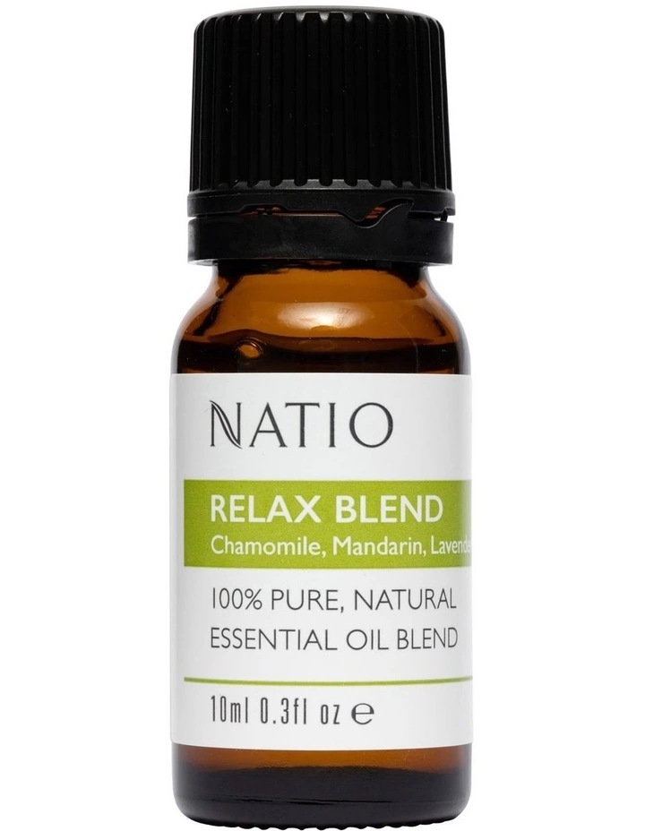 Product Ingredients: Pure Essential Oil Blend – Relax 10ml Citrus Aurantium Bergamia Fruit (Bergamot) Oil, Lavandula Hybrid Flower (Lavandin) Oil, Citrus Reticulata Peel (Mandarin) Oil, Cedrus Atlantica Wood (Cedarwood) Oil, Lavandula Angustifolia Herb (Lavender) Oil, Anthemis Nobilis Flower (Chamomile) Oil. Pure Essential Oil Blend – Sleep 10ml Lavandula Angustifolia Herb (Lavender) Oil, Citrus Aurantium Bergamia Fruit (Bergamot) Oil, Origanum Majorana Leaf (Marjoram) Oil, Citrus Reticulata Peel (Tangerine) Oil, Anthemis Nobilis Flower (Chamomile) Oil.