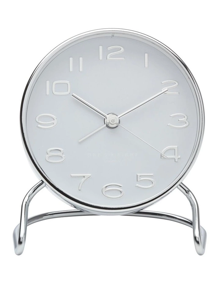 With a polished Silver finish case and a beautiful silver polished stand and slim line hands, this fun little number will add personality to your home.