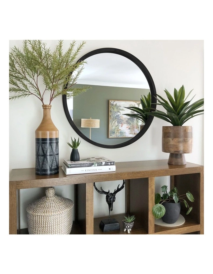A simple Scandi scheme requires unfussy accessories, so with its modest design, this mirror really fits the bill! It’s a perfect circle of glass encompassed by a solid wood frame with narrow edging and textural grain. Versatile styling is the name of the game here this attractive mirror would enhance any room and can be displayed in a number of on-trend ways. Prop it on a sideboard in a Mid-Century lounge or on a dresser in a modern-country kitchen.