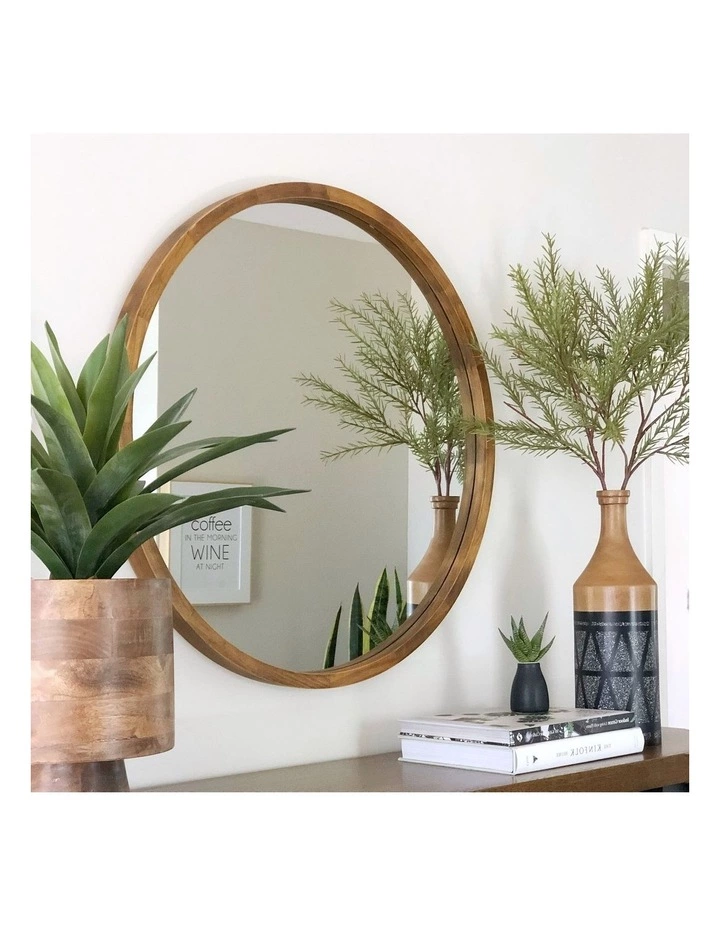 A simple Scandi scheme requires unfussy accessories, so with its modest design, this mirror really fits the bill! It’s a perfect circle of glass encompassed by a solid wood frame with narrow edging and textural grain. Versatile styling is the name of the game here this attractive mirror would enhance any room and can be displayed in a number of on-trend ways. Prop it on a sideboard in a Mid-Century lounge or on a dresser in a modern-country kitchen.