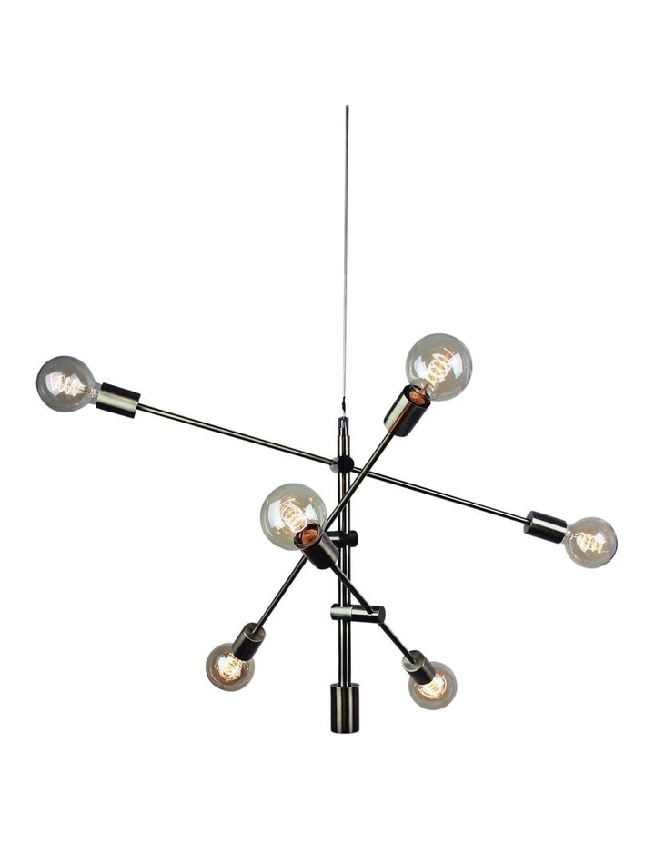 Step outside the box with the Chelsea geometric pendant. Three pivoting arms can be angled and adjusted to suit your room and your personality. Available in matte black or antique brass, the Chelsea looks great with decorative globes, either opal or exposed filament (as used in the photo). Suspended on a wire and a clear cord.
