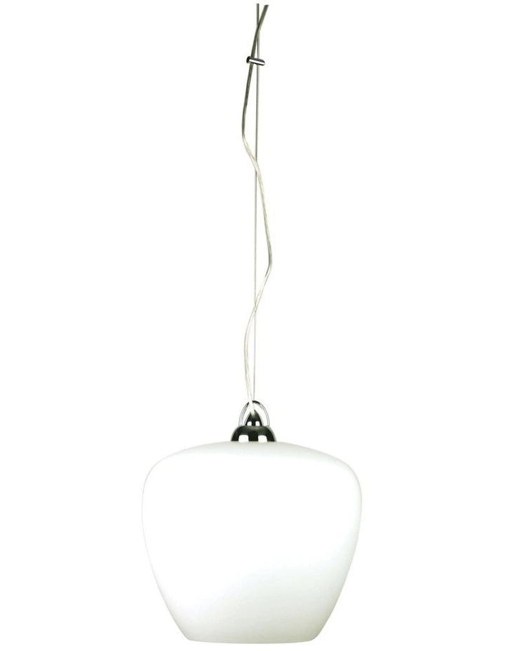Gorgeous classically designed bell-shaped matt opal glass pendant with clear flex cord and chrome canopy. Ideal for use with a compact fluorescent bulb – available to purchase separately.