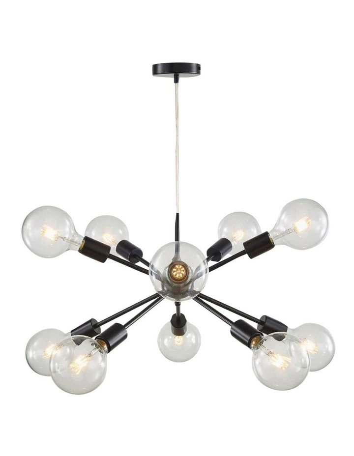 Nicely clumped, exposed globe pendant. SPUTNIK is available in a 6-light or 10-light option, which is slightly larger. Ideal for an entry, stairwell or over a dining table. Best suited to G95 spherical globes in either opal matt or clear LED filament (as pictured). The clear pvc cord can be shortened to suit the room.