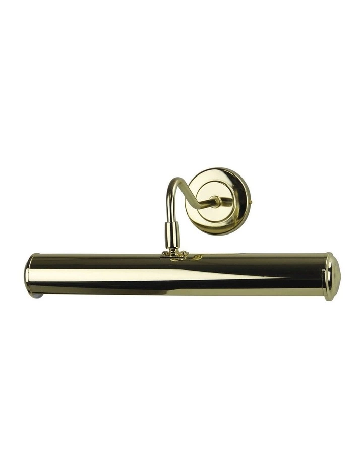 Wall-mounted 2lt traditional style, brass plated picture light. Can adjust the tilt of the shroud towards the wall, as required.