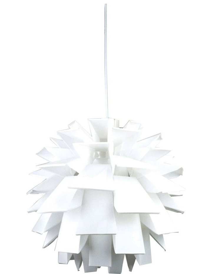 Poly-propylene pendant with a brushed chrome canopy and white cord suspension. Ideal for use with a compact fluorescent bulb, available for purchase separately.