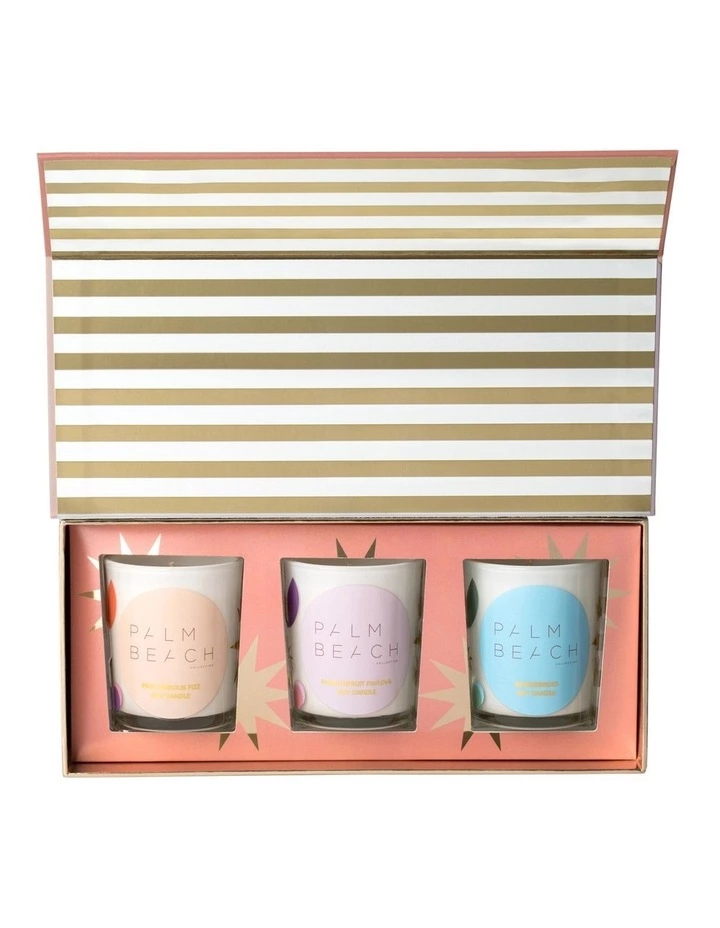 This trio of Mini Candles in our Christmas scents will have you feeling festive. Featuring Pink Hibiscus Fizz, Passionfruit Pavlova, and Gingerbread, its the ideal gift for a loved one – or for yourself!