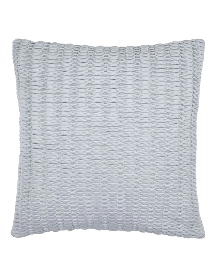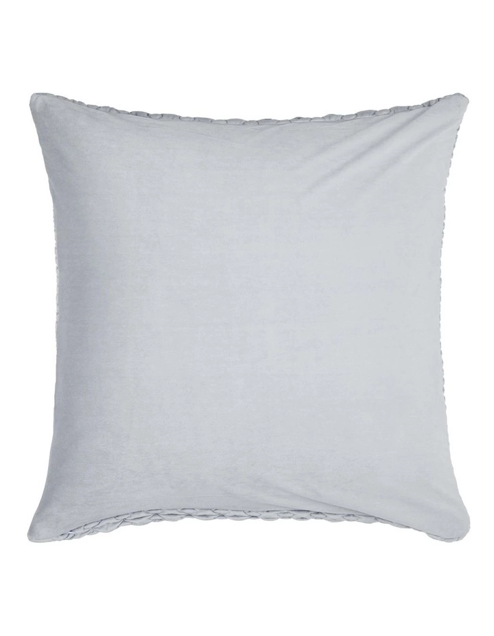 Loxton accessories combine pattern with tactile softness. Plush velvet is gathered and embroidered into raised stripes, reversing to smooth velvet for visual and textural contrast. The range comprises a European pillowcase, square cushion and Long Cushion, in three classic colours – navy, platinum and champagne.