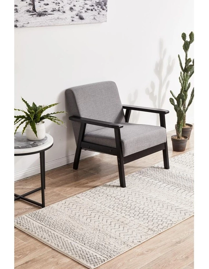 Perfectly on trend for tribal, this monochromatic palette and vintage design meet to create a rug with elegance and subtlety. Power loomed with a polypropylene pile, this rug is non-shed and easy care. These rugs offer style, versatility and are available in rectangles, rounds, and runners in a large variety of sizes.