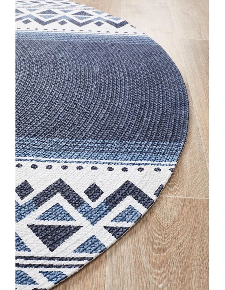 Perfect for a variety of styling themes, Lunar is a beautiful collection of printed cotton round rugs, available in 3 great sizes. Each piece is hand woven in India and features an intricate print in vivid hues.
