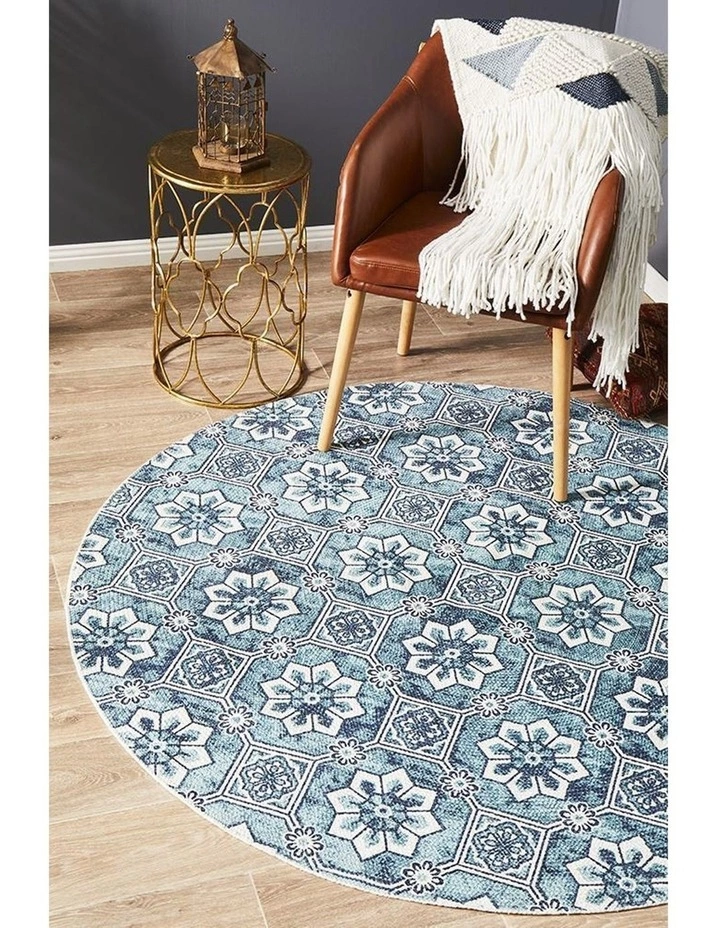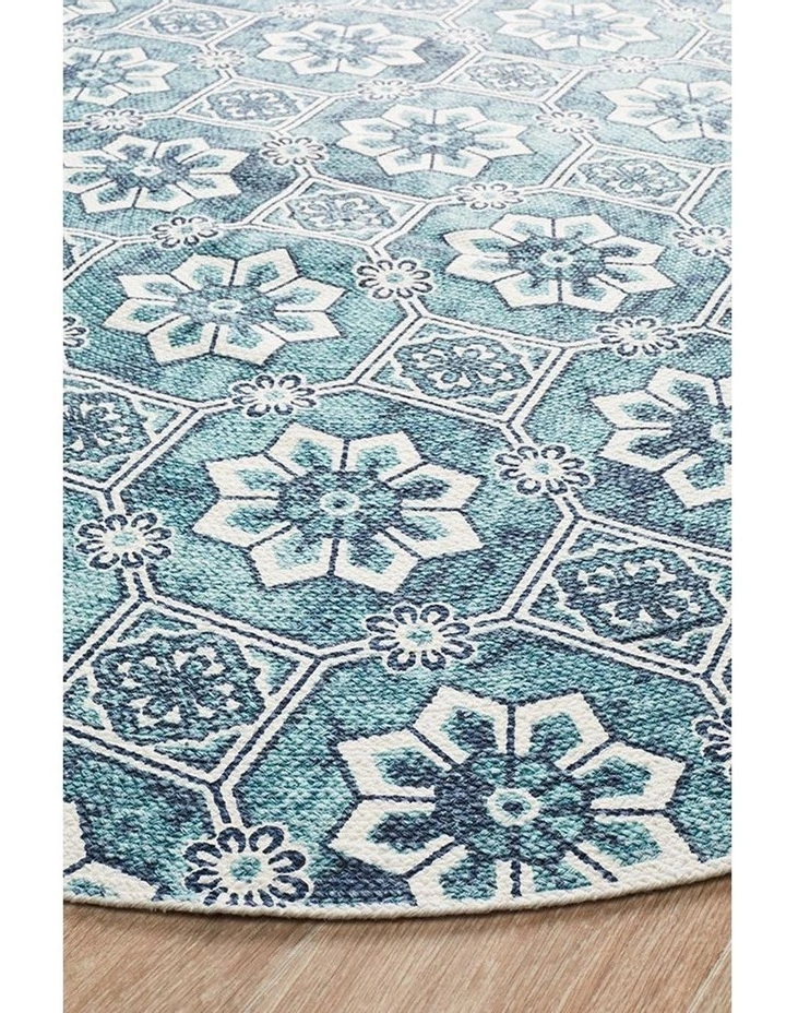 Perfect for a variety of styling themes, Lunar is a beautiful collection of printed cotton round rugs, available in 3 great sizes. Each piece is hand woven in India and features an intricate print in vivid hues.
